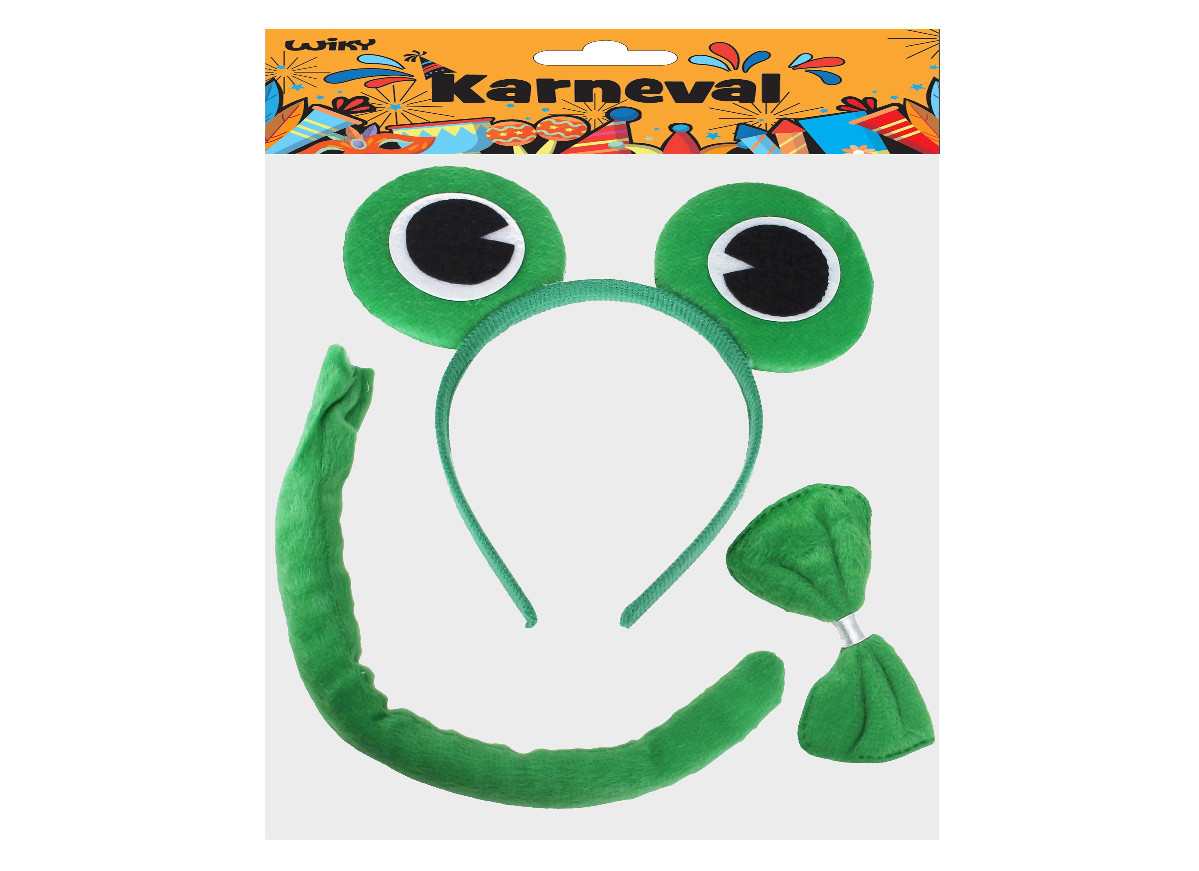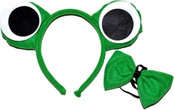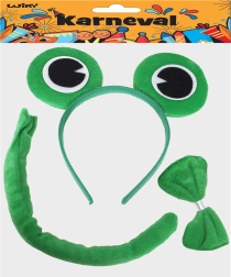 Превърнете се за миг в сладка жаба! Този карнавален комплект за деца включва диадема с уши и папийонка за врата, с които ще създадете бърз и ефектен костюм за маскарад, детски празненства и училищни тържества. Подходящо от 3 години.