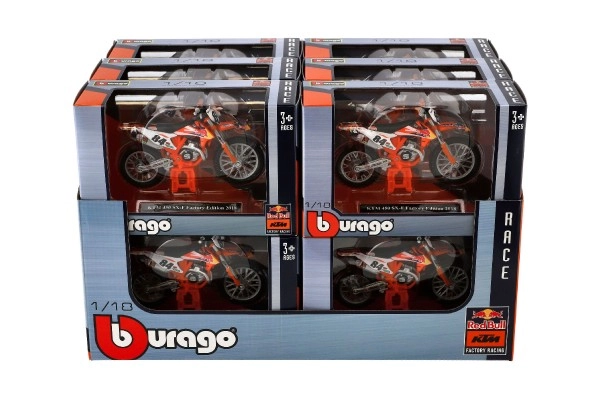 За любителите на мотоциклети и колекционерите марката Bburago представя детайлен модел на мотоциклет KTM 450 SX-F Factory Edition 2018 в мащаб 1:18. Този модел е идеален както за игра, така и за изложение в колекция.