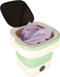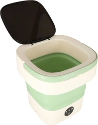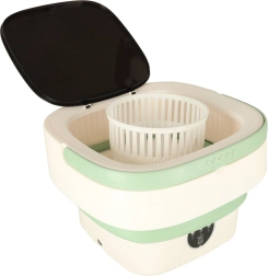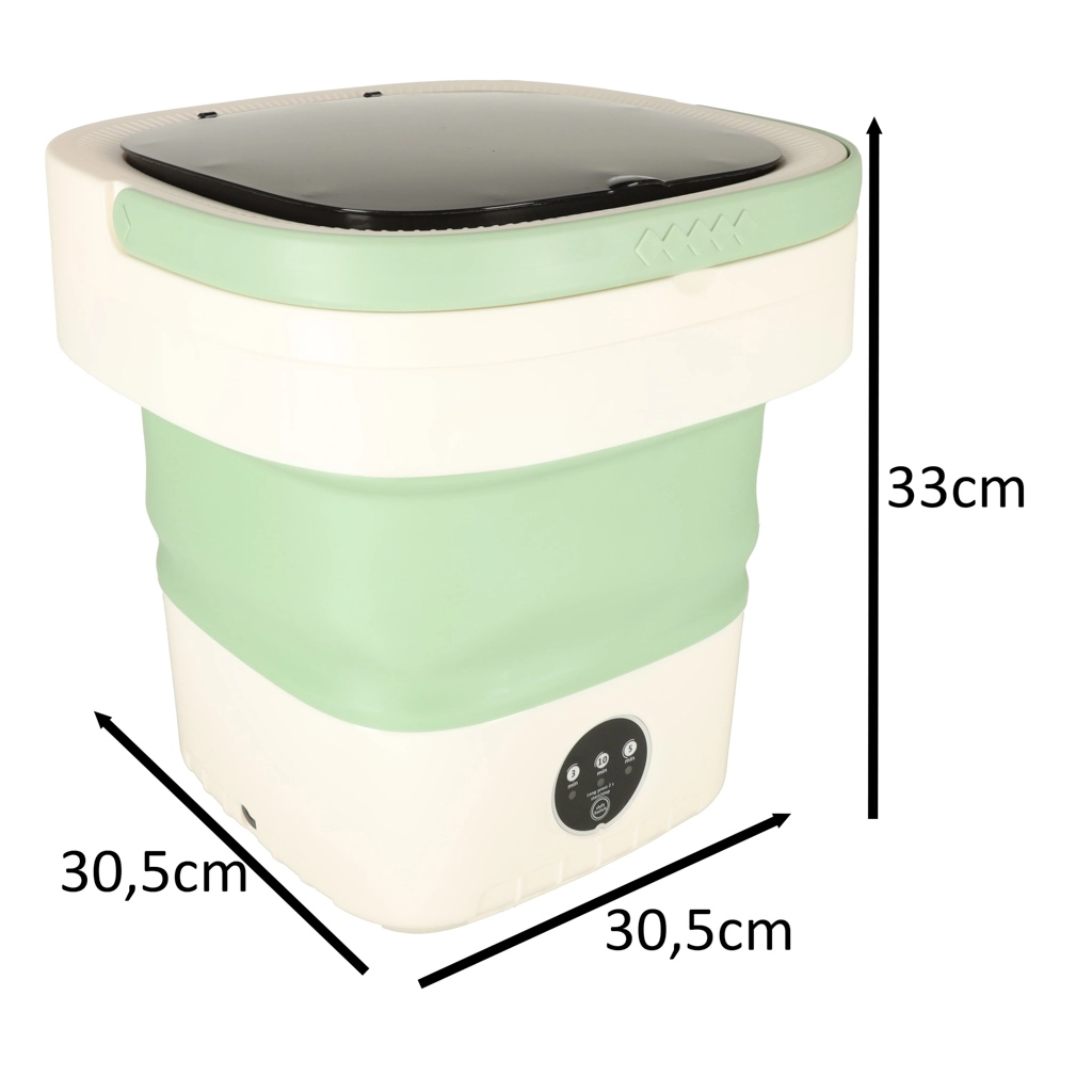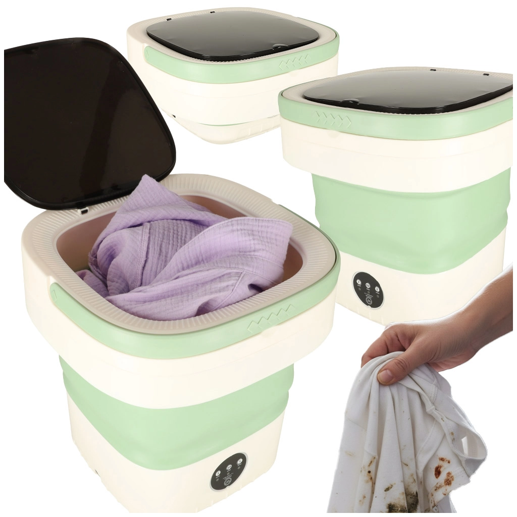 С тази преносима пералня ще изперете тениски, бельо или детски дрехи навсякъде – нужна е само вода и захранване 12 V. Силиконовото сгъваемо тяло пести място, така че без проблем влиза в куфар или раница, а практичната дръжка осигурява удобно пренасяне.