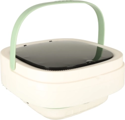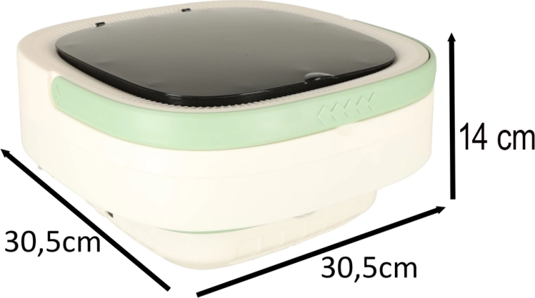 Управлението става за секунди: от интуитивния панел избирате 3 режима на пране (3, 5 или 10 минути). Вътрешната кошничка улеснява прането и лекото центрофугиране, което ускорява съхненето на прането. Максималният обем е 12 литра вода до 50 °C, като е включен маркуч за източване за бързо изпразване.