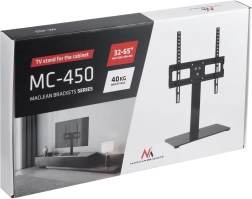 Универсалната стойка Maclean MC-450 е предназначена за използване върху ТВ шкаф и е съвместима с телевизори на марки като Sony, LG, Samsung, Philips и други. Размерите на екрана са ориентировъчни и са подходящи за телевизори, отговарящи на VESA стандартите: 75x75, 100x100, 200x100, 200x200, 400x200, 300x300, 400x400 mm.