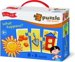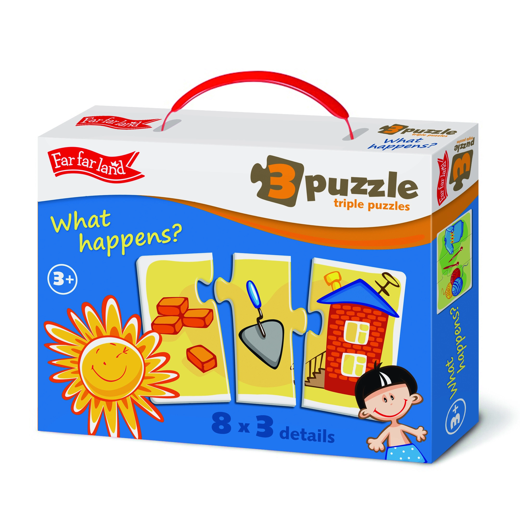 Открийте умния комплект Far Far Land, който по забавен начин учи децата на съпоставяне и връзки между предметите. Всяко изображение е разделено на три части, а задачата е да се намери правилната тройка, която принадлежи заедно. Подреждането подпомага концентрацията, търпението и носи радост от всеки успешно подреден мотив.