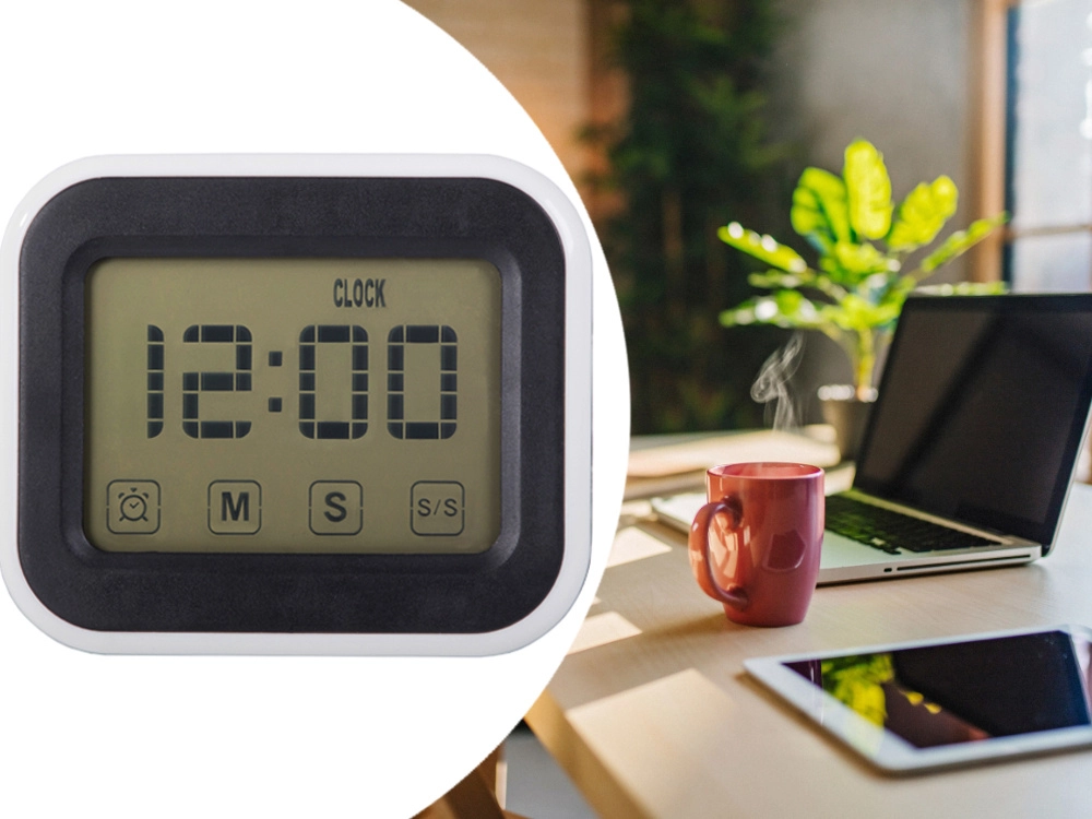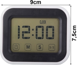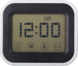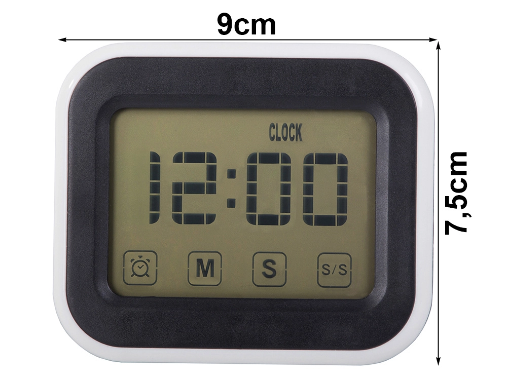 Благодарение на силния магнит можете да го закрепите на хладилник или метален шкаф, или да го поставите на маса чрез сгъваемите крачета. Вграденият будилник и таймер (обратно броене) са полезни за готвене, учене и тренировки.
