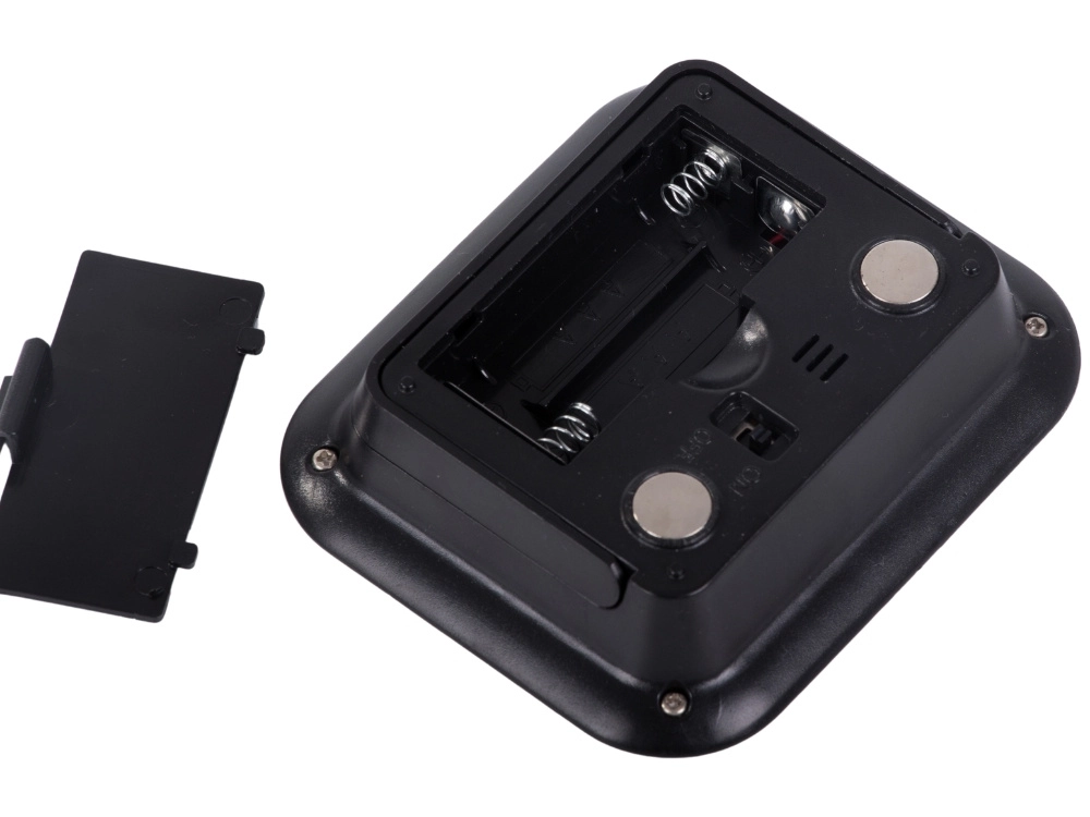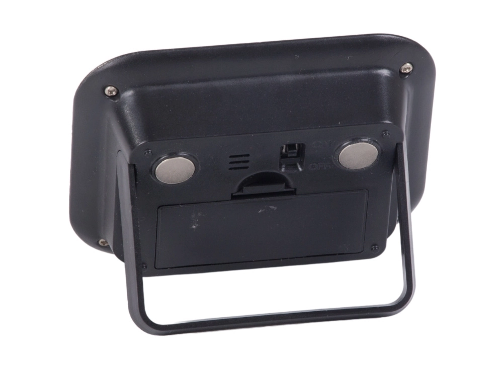 Компактен дигитален часовник с будилник и голям LCD дисплей за лесно четене на часа по всяко време на деня. Предлага 12/24-часов формат, практично подсветване за нощна проверка, таймер и силен магнит за закрепване на хладилник. Благодарение на подвижната поставка е идеален за нощно шкафче, кухня и офис. Захранва се с 2× AAA батерии (не са включени).