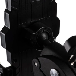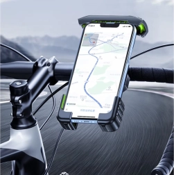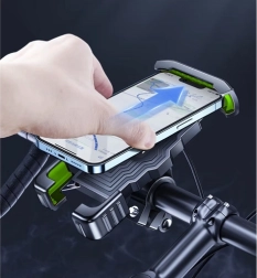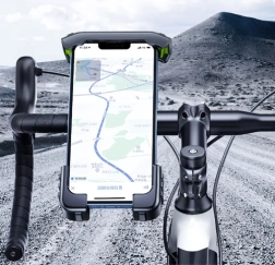 Стойката е с функция за въртене на 360° и антивибрационни подложки, които минимизират трептенията, така че екранът на телефона остава ясно видим и стабилен дори по паваж или планински терен.