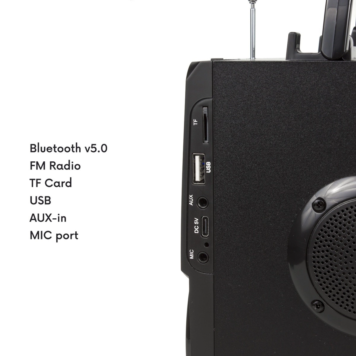 - Широки възможности за свързване – Bluetooth 5.0, USB, SD/MMC, AUX, FM радио.
