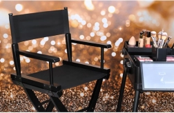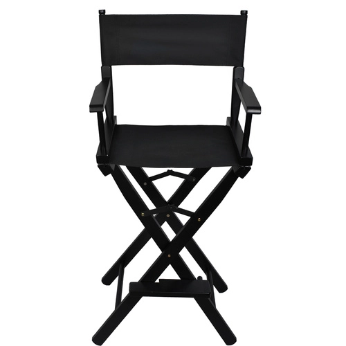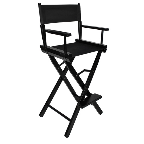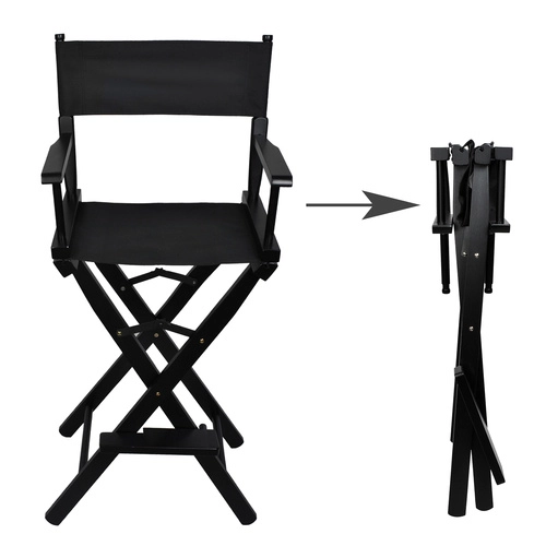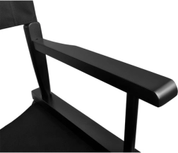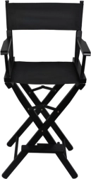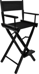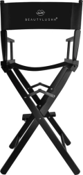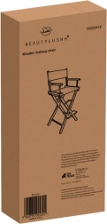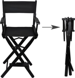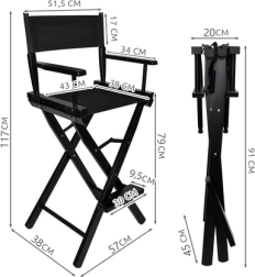 Сгъваем козметичен стол в черен цвят е професионално дървено кресло, предназначено за грим, визаж и стилизиране, идеално за салони и мобилни гримьори.