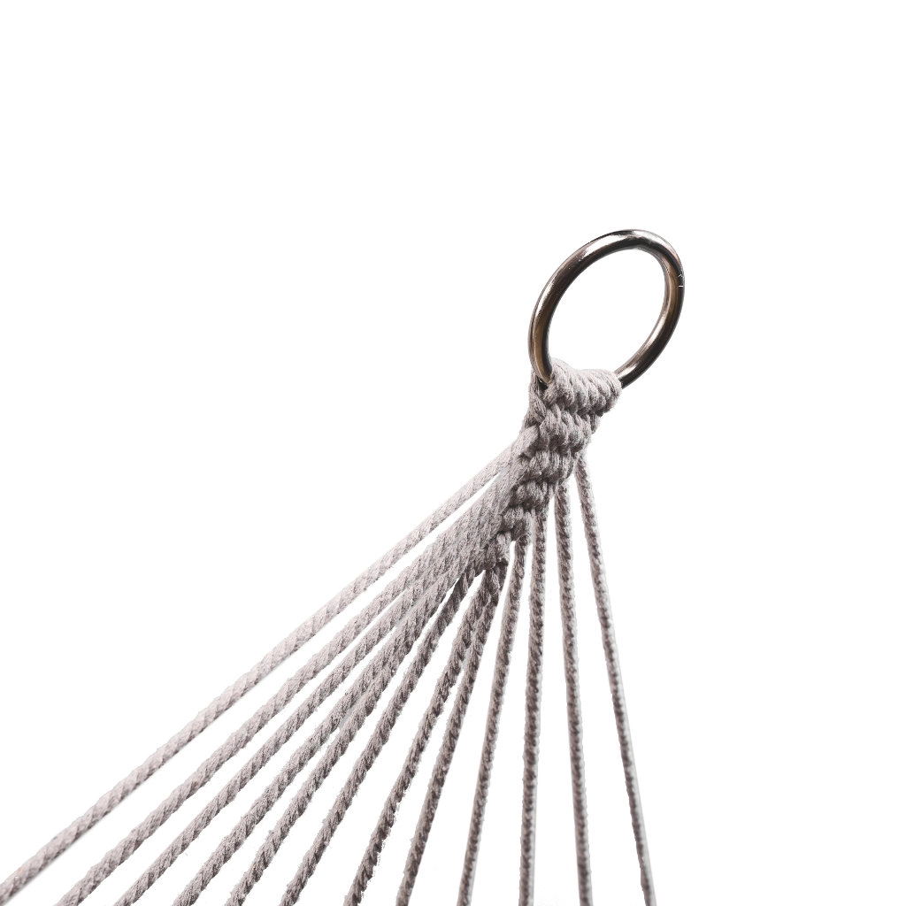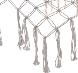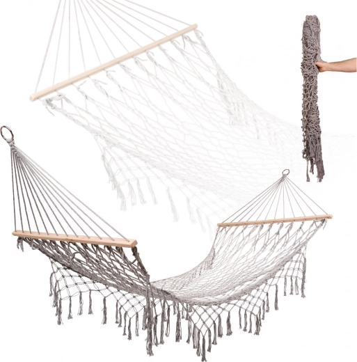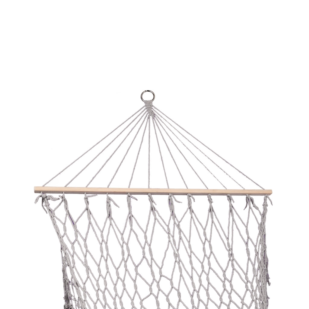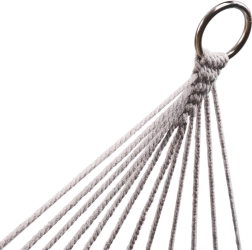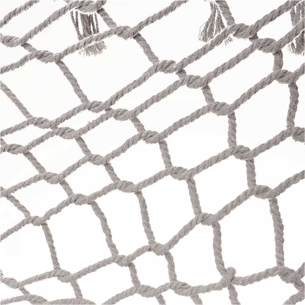 Изработен от висококачествени памучни влакна (65%), които осигуряват висока здравина и товароносимост до 250 кг. Благодарение на елегантните ресни и сивия цвят се вписва идеално във всяка градинска обстановка.