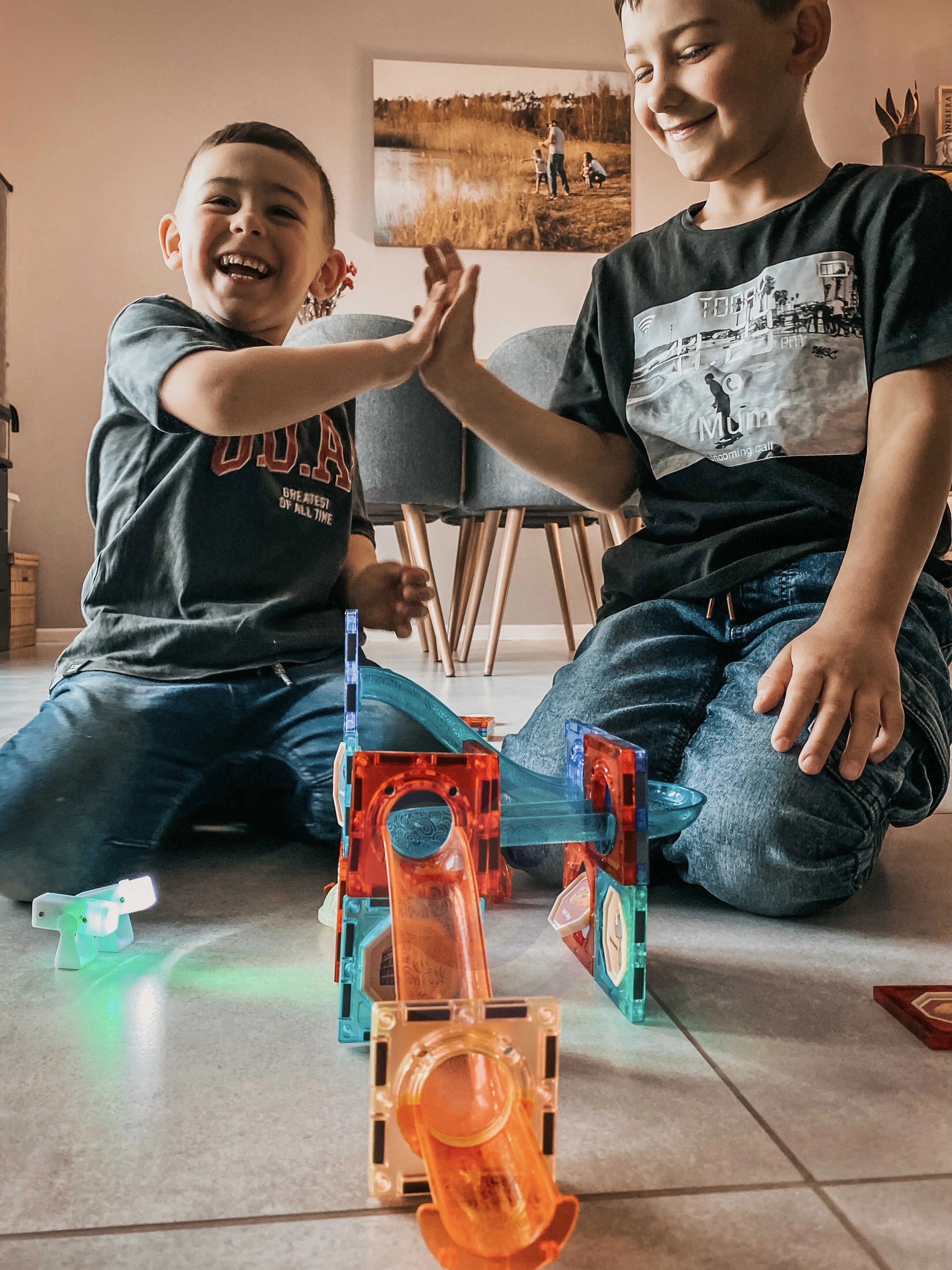 Качествените магнити свързват частите здраво, така че дори сложни 3D постройки и дълги трасета остават стабилни и безопасни по време на игра.