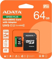 Картата памет microSD Speed Plus 64GB е идеална за редица устройства, включително дронове, спортни камери и 360° фотография. Осигурява високоскоростни преноси до 180 MB/s*, което я прави перфектен помощник за приключенци, които искат да уловят всеки миг. *Скоростите над нивото UHS-I 104 MB/s изискват специален четец на карти и могат да варират в зависимост от системата и състоянието на устройството.