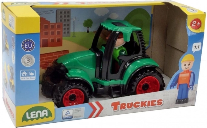 Тракторът LENA Truckies ще зарадва всеки малък строител. Благодарение на здравата конструкция и качествената пластмаса издържа и на по-динамична игра както на закрито, така и в двора или в пясъка. Отварящата се кабина с фигурка стимулира въображението и развива фината моторика.