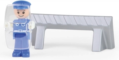 Включени са активна фигурка на полицай с щит и пътна бариера, които позволяват на децата да създават свои полицейски сценарии и да упражняват ролята „да помагам и да защитавам“. Играчката е изцяло механична – без батерии, само чисто забавление.