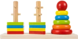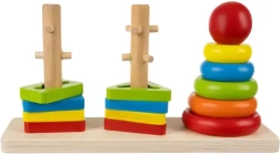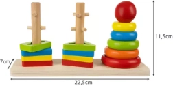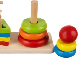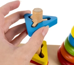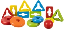 Запознайте се с трите основни форми: кръг, триъгълник и правоъгълник. Играчката съдържа основа и множество части, които се манипулират и подреждат лесно.
