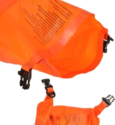 Благодарение на регулируемия колан със здрав клипс буйката се закрепя към хълбоците и остава близо до вас при спешни случаи.