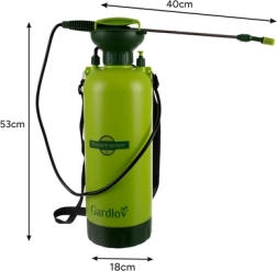 Практична и мощна пръскачка под налягане Gardlov с обем 8 литра е идеална за вашите градинарски проекти. Оборудвана е с раменен ремък, дълго копие и гъвкав маркуч за удобно и лесно боравене.