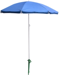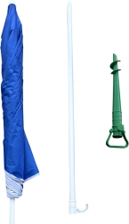 Острият връх и здравата конструкция позволяват бързо закрепване в пясък или почва и държат чадъра стабилен на място.