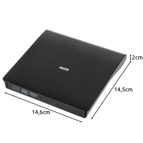 Този външен DVD/CD механизъм IZOXIS е готов за употреба веднага след свързване благодарение на функцията plug and play, което означава, че не е нужна предварителна инсталация. Осигурява бърз трансфер на данни чрез модерния интерфейс USB 3.0, който поддържа скорости на запис и четене до 24x за CD и 8x за DVD. Идеален е за архивиране, гледане на филми или съхранение на данни.