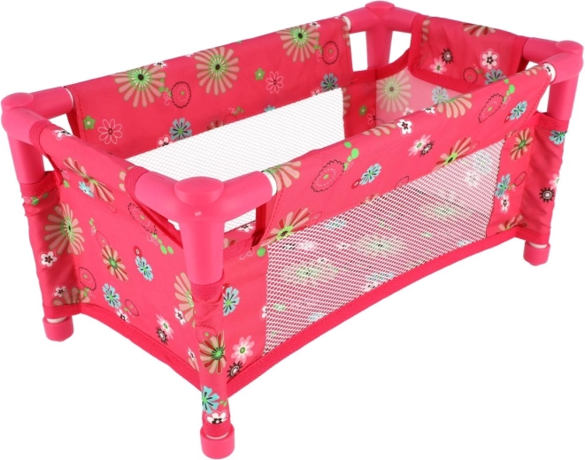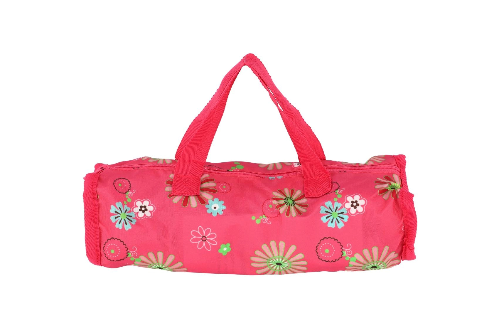 Пътно легълце за кукли с чанта, розов флорален
