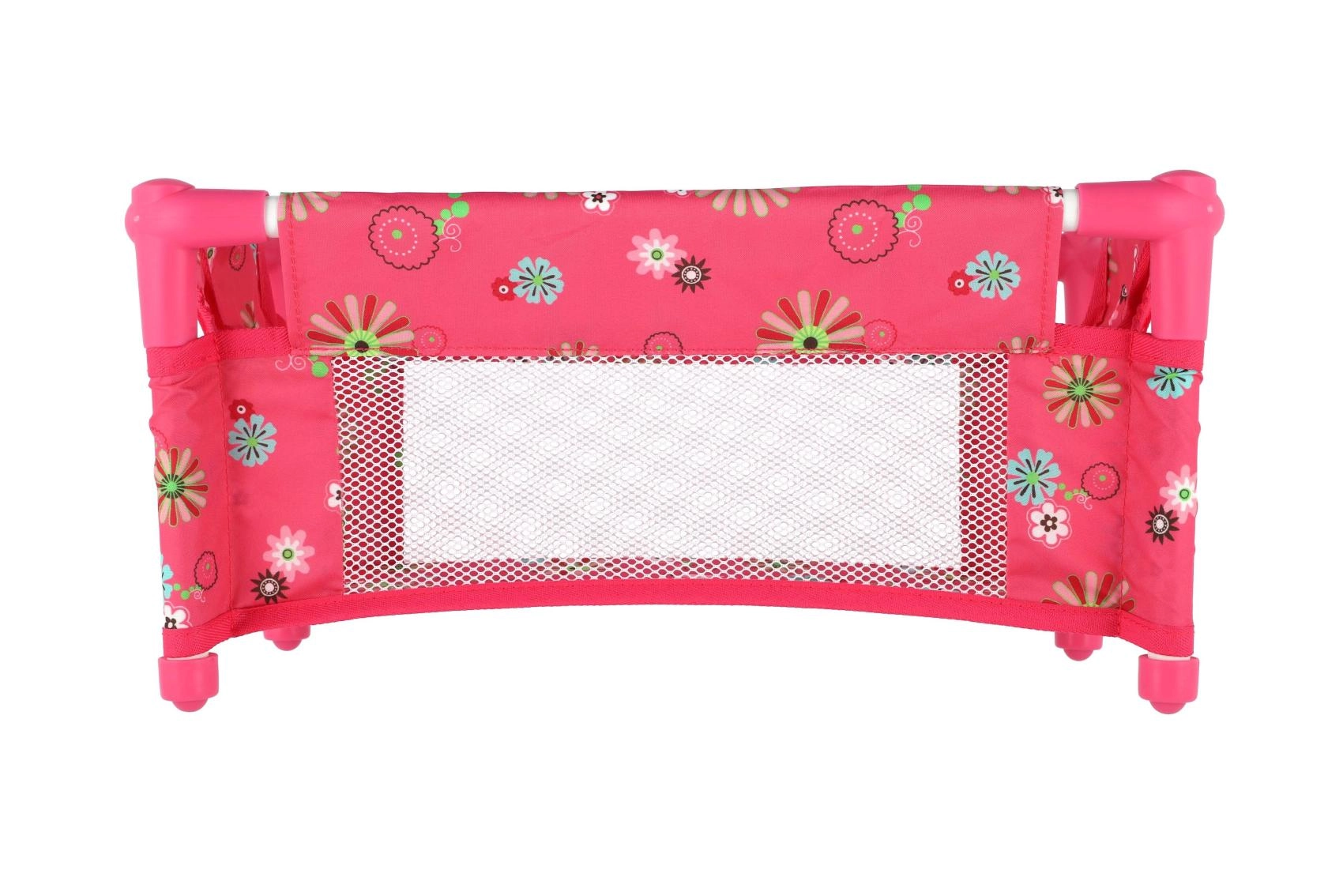 Това розово пътно легълце за кукли носи на децата реалистична грижа за любимите им приятелки. Благодарение на мрежестите странични части децата имат добър поглед към куклата, а същевременно е осигурена добра вентилация. Легълцето лесно се сгъва в текстилна чанта, което го прави идеално за гости и почивки.