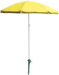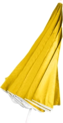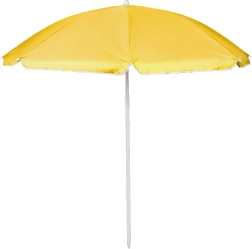 Насладете се на лятото в комфорт с плажния чадър, който комбинира силна UV защита UPF 50+ с лесна употреба. Сребърното вътрешно покритие отразява вредното излъчване и намалява нагряването, така че под сенника е приятно прохладно дори в най-горещите часове. Жълтата текстилна материя е устойчива на избледняване и запазва свежия си вид в продължение на много сезони.