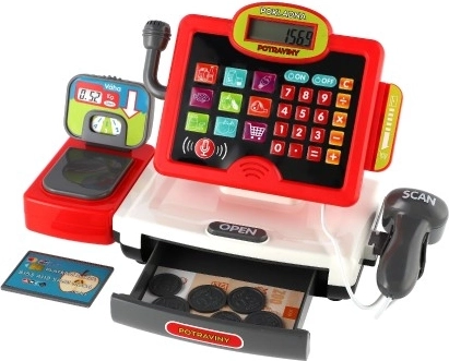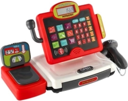 Забавна и образователна детска електронна каса с аксесоари за малки търговци. Включва скенер със светлинни и звукови ефекти, играчки банкноти и монети, слот за кредитна карта, функционален калкулатор и везна за плодове и зеленчуци. Идеална играчка за развитие на въображението и базовите сметни умения.