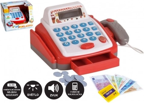 Забавен и реалистичен детски касов апарат за малки продавачи. Предлага функционален калкулатор с дисплей, отворящо се чекмедже за пари и скенер за баркодове със светлина и звук. Идеална играчка за развитие на въображението, смятането и социалните умения.
