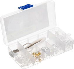 Комплектът за ремонт на очила позволява лесен и бърз ремонт на вашите коригиращи и слънчеви очила. Съдържа всички необходими стандартни елементи за ремонт и е лесен за използване, без нужда от специални умения.