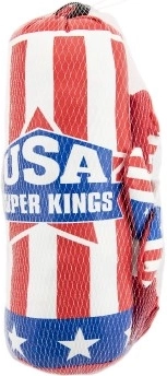 Този детски боксов комплект е чудесен избор за първи стъпки в света на бокса. Благодарение на по-малките размери е подходящ за детската стая и за тренировки у дома. Цветният мотив на американското знаме привлича децата и ги мотивира да се движат.