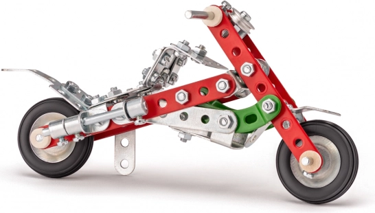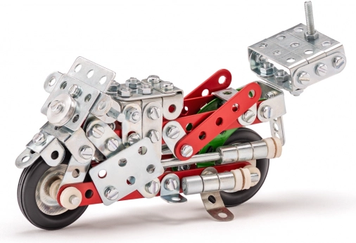 Конструкторът Merkur Мотоциклет предлага възможност за сглобяване на десет различни модела мотоциклети и други превозни средства. Благодарение на този комплект децата развиват своята креативност, логическо мислене и фината моторика. Всеки модел предлага ново конструкторско изживяване и осигурява неограничено забавление.