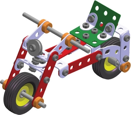 Позволява сглобяване на собствени дизайни на превозни средства благодарение на вариативността на металните компоненти.