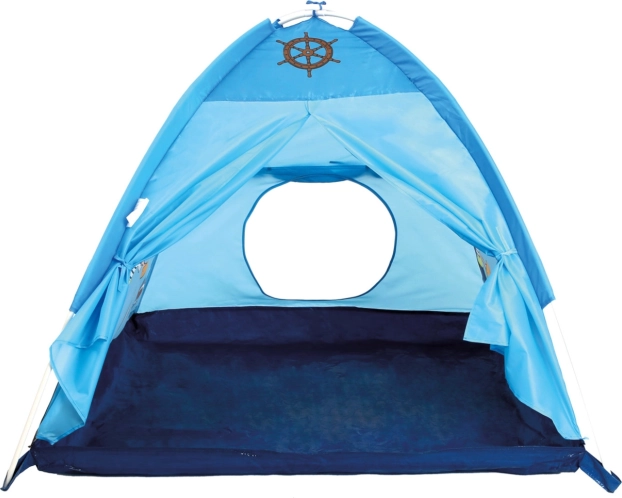 Приключенската детска палатка с пиратски мотив ще донесе много забавление както в стаята, така и в двора. Изработена е от издръжлив полиестер, сглобява се бързо, има просторен интериор за игра и отдих и вход с връзки. Подходяща за употреба на закрито и открито (в сухо време), а след игра лесно се сгъва за спестяване на място.