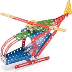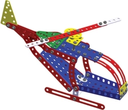 Сглобете модел на хеликоптер от метални части, налични в ярки цветове и лесни за свързване.