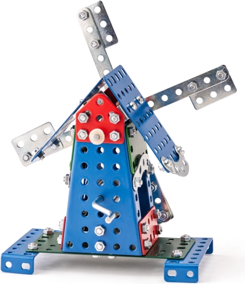 Конструкторът Merkur Мелница носи часове забавление и креативност за всички, които обичат технически предизвикателства. Този комплект позволява да се сглобят до 10 различни модела и е перфектен за развитие на техническите умения и въображението на младите строители.
