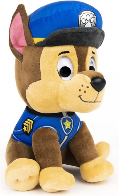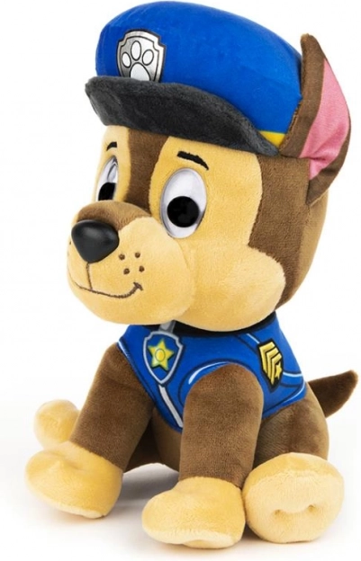 Плюшеното кученце Чейс от сериала Пес патрул е с височина приблизително 23 см и е облечено в характерната синя униформа с шапка и значка. Прецизната изработка, включително изражението на лицето, подпомага креативната игра и развива детската фантазия.
