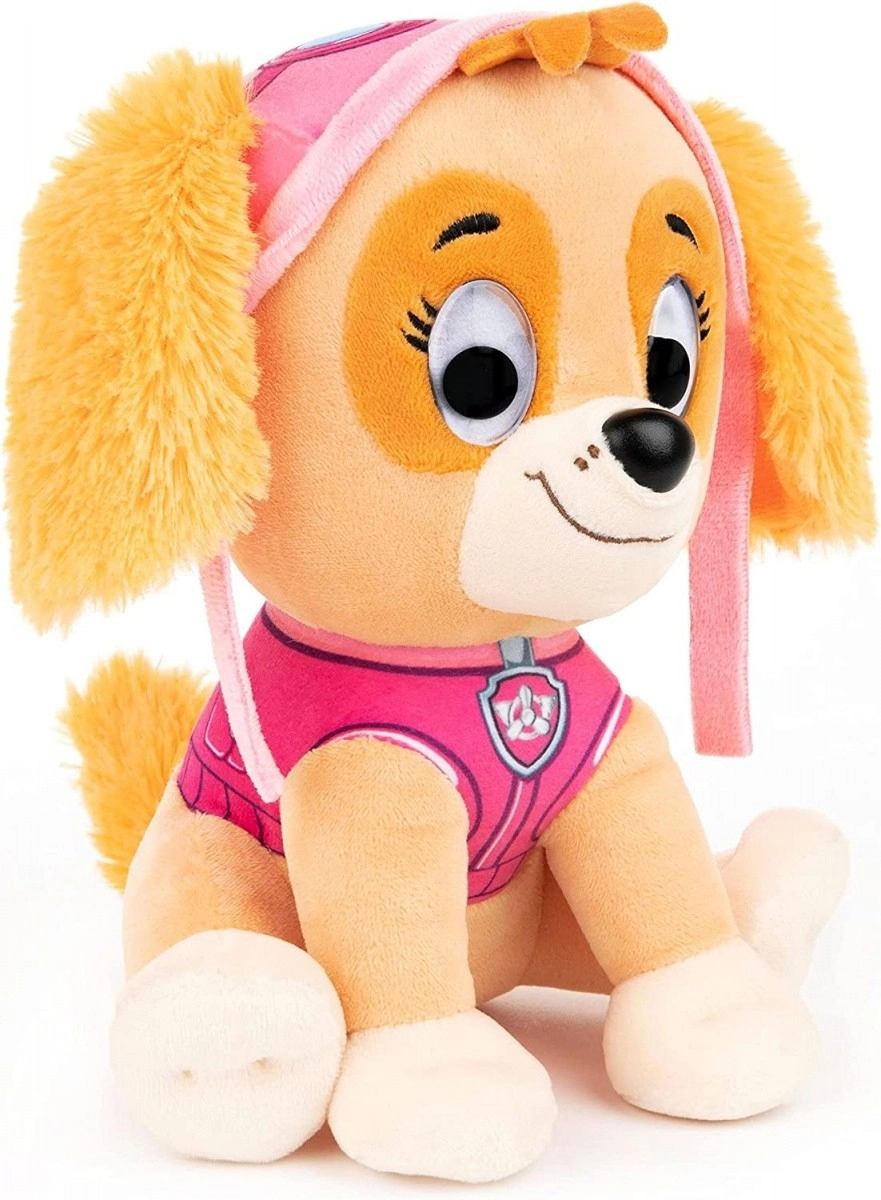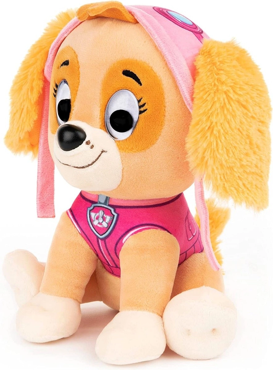 С плюшената играчка Скай от Пес патрул малките почитатели на тази популярна поредица могат да преживяват приключения с любимия си герой. Всяка плюшена играчка е с приблизителна височина 23 см и е облечена в характерния си костюм с шапка и емблема на Пес патрул. Мекият и приятен материал гарантира, че след игра децата могат удобно да се сгушат за почивка или заспиване.