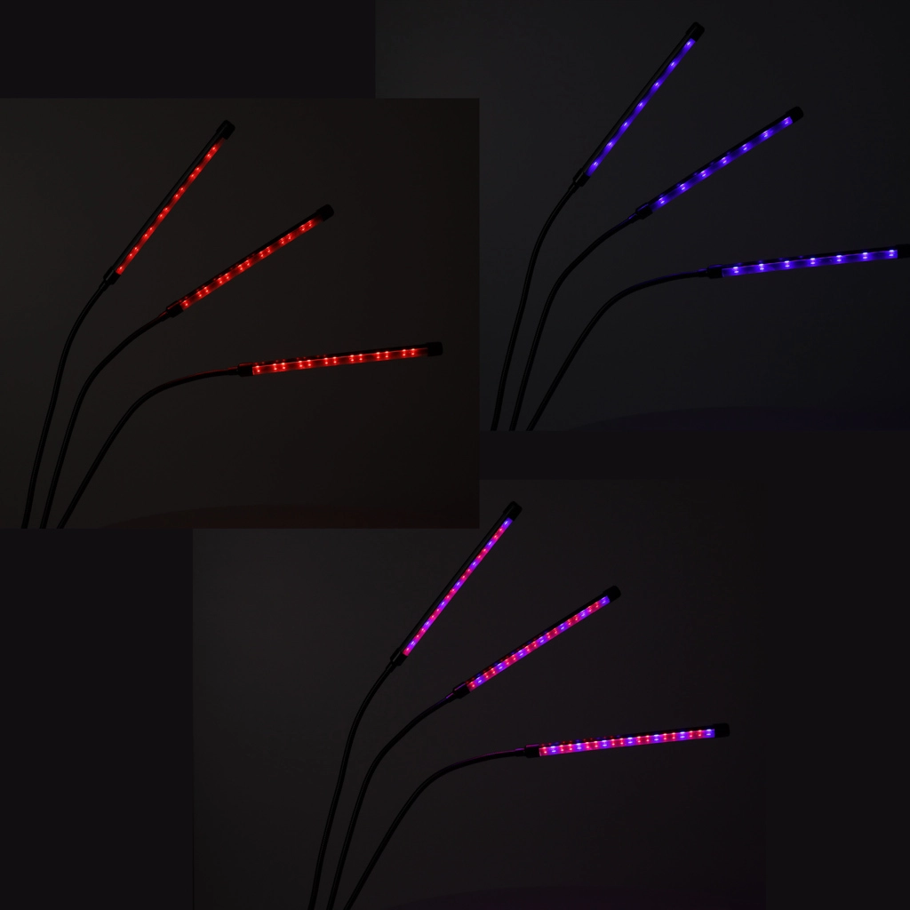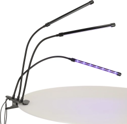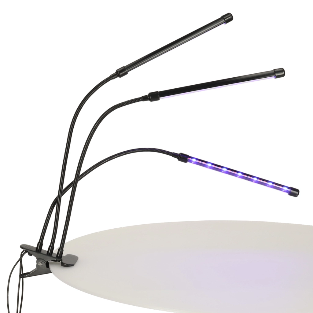 LED лампата за отглеждане на растения е с трируков дизайн и подвижна щипка, което позволява вариативно подреждане на светлината според вашите нужди. Използвайте вградения таймер, задайте продължителност на осветяване 3, 9 или 12 часа и настройте светлинните условия за максимална подкрепа на растежа.