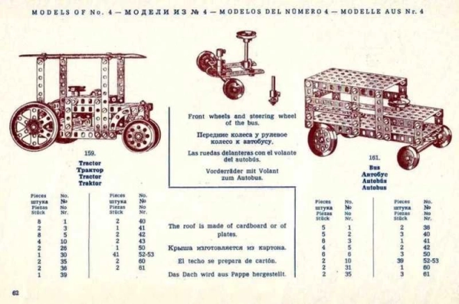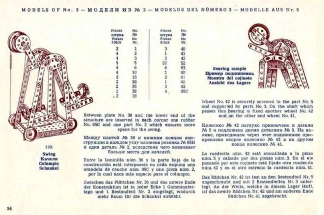 В комплекта има голяма, 94-странична книжка с инструкции в стил от 30-те години, предназначена за комплектите MERKUR Classic C03, C04 и C05. Можете да сглобите до 141 различни модела – от превозни средства и машини до технически механизми. Идеален подарък за креативни деца от 8 години, технически ентусиасти и любители на ретро дизайна.