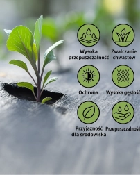 Този качествен агротекстил е идеален за защита на растенията и почвата от плевели, без необходимост от химически препарати. Благодарение на свойствата си задържа влагата в почвата и подобрява нейната топлинна регулация, което ускорява растежа на вашите растения.