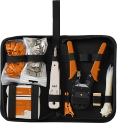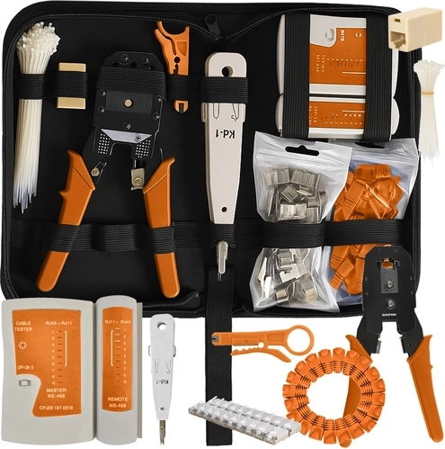 Този универсален мрежов комплект ще се погрижи за всички ваши нужди при работа с кабели. Включва тестер, работещ с различни типове кабели, който поддържа както Ethernet, така и телефонни кабели, което го прави многофункционално решение 2 в 1. Инструментите са ергономични и готови за употреба, което позволява да започнете инсталация или ремонт моментално.