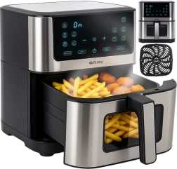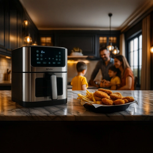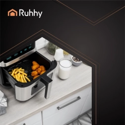 Фритюрникът Ruhhy предлага безопасно пържене без мазнина, което позволява приготвяне на любимите ястия в по-здравословен вариант, без да се компрометира вкусът. Неговото незалепващо покритие улеснява почистването, а модерният дизайн се вписва идеално във вашата кухня.
