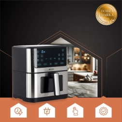 Фритюрникът осигурява бърза и равномерна циркулация на въздуха, с което постигате ефект на хрупкава коричка без необходимост от пържене в мазнина. Носи здраве и удобство в кухнята ви благодарение на липсата на пръскаща мазнина и дим.