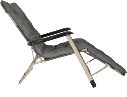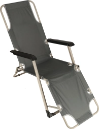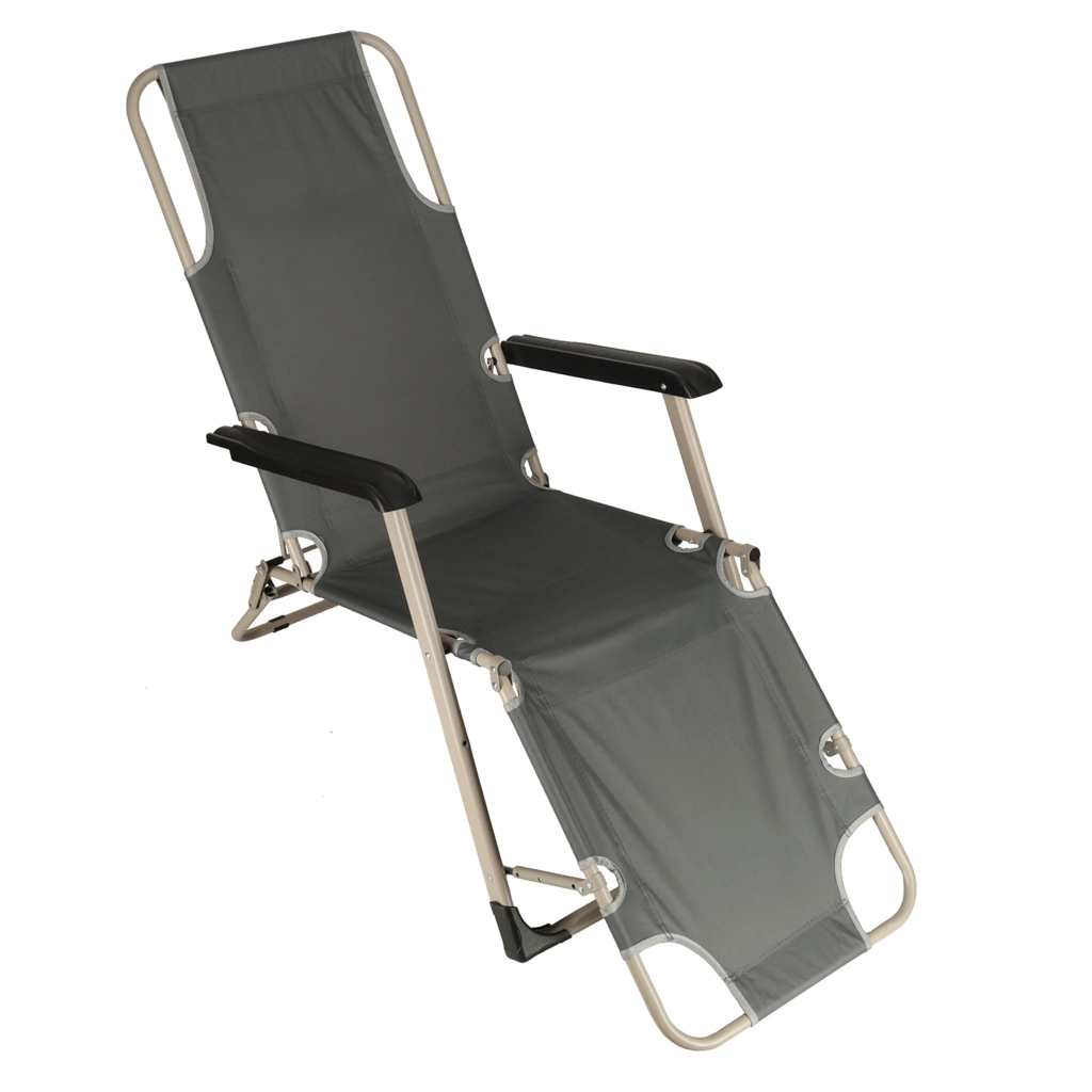 Леглото е изработено от издръжлива метална рамка с покритие от 100% полиестер Oxford. Лесно се сгъва и благодарение на две позиции на наклон е идеално за релаксация и слънчеви бани.