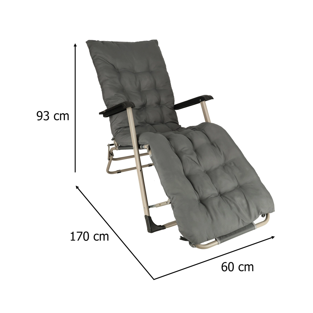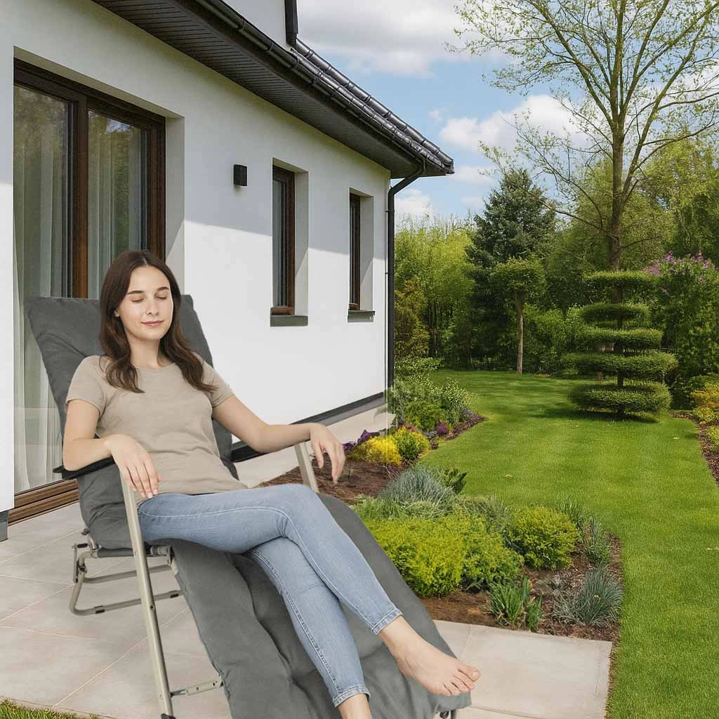 Сивото сгъваемо градинско легло с удобна възглавница е идеален избор за релаксация в градината или на терасата. Високоустойчивата конструкция и сгъваемият дизайн гарантират лесно пренасяне и съхранение.