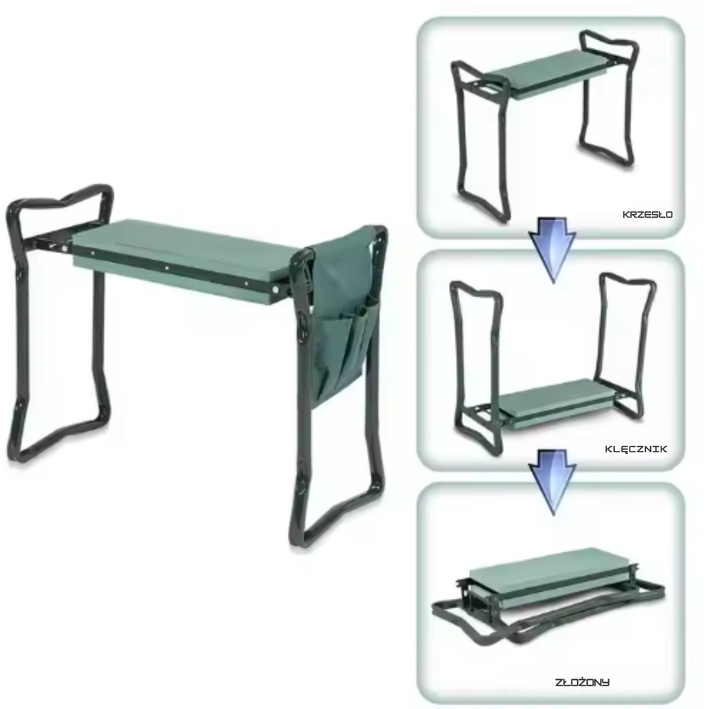Благодарение на функцията 3в1 можете да използвате коленача като столче за засаждане, коленаче за плевене или седалка за отдих. Меката пяна от EVA е идеална за комфорт на коленете. Сгъваемата конструкция позволява лесен транспорт и съхранение.