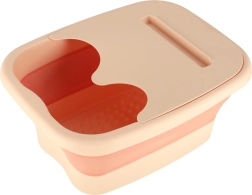 Тази масажна ваничка за крака е отлично решение за тези, които търсят удобен начин за релаксация след дълъг ден. Изработена от качествена пластмаса в елегантни бежови и сьомгови тонове, тя предлага не само стилен вид, но и практична функционалност.