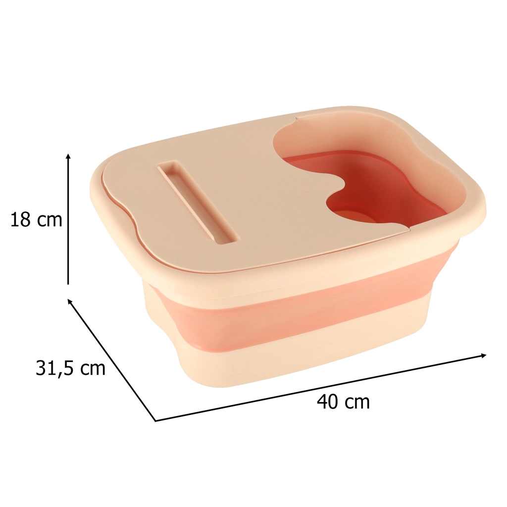 С капацитет 13 литра побира достатъчно вода за отпускаща баня на краката. Издатините на дъното нежно масажират стъпалата ви, докато сгъваемата конструкция позволява лесно съхранение.
