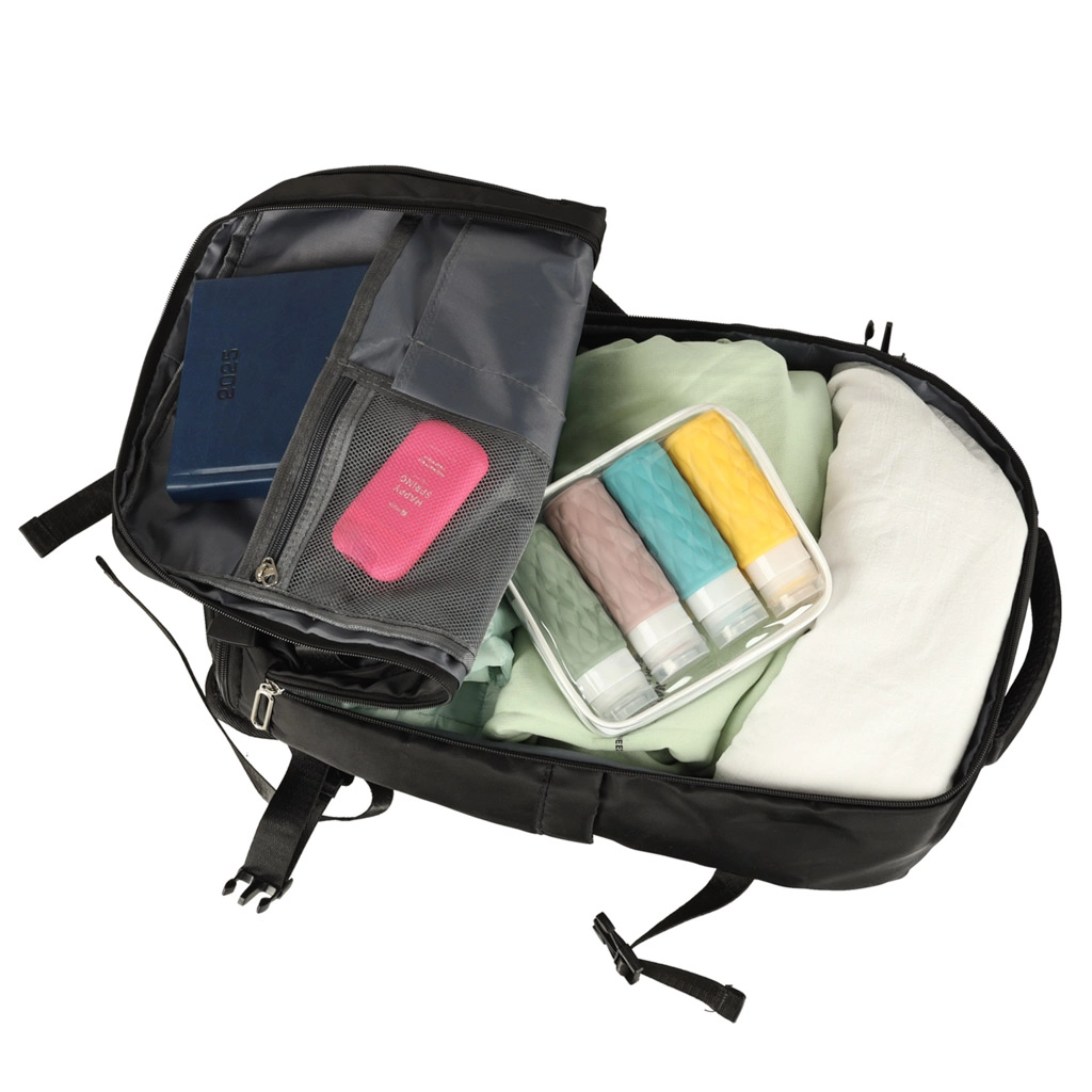 Водоустойчивост: Тази раница е изработена от висококачествен полиестер, който осигурява защита от вода. Оптимизирани отделения за съхранение: С няколко разширяеми отделения можете лесно да поддържате ред в раницата. Комфорт при носене: Раницата е оборудвана с подплата на гърба и презрамките, която равномерно разпределя теглото и предоставя максимален комфорт по време на носене.