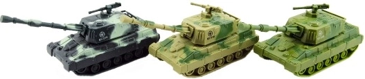 Реалистичен пластмасов танк с дължина 11 см с инерционен механизъм ще зарадва всички малки войници. Здравата изработка е идеална за екшън игри и развиване на фантазията. Подходящо за деца от 3 години.