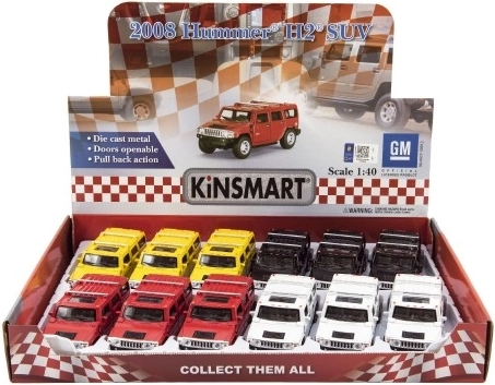 Реалистичният модел Hummer H2 SUV с дължина 12 см предлага качествена изработка, метална каросерия (die-cast) и издръжливи пластмасови детайли. Благодарение на обратното движение е достатъчно да дръпнеш количката назад и да я пуснеш – веднага потегля напред. В много версии допълнително радва с отваряеми врати, които увеличават удоволствието от играта и експонирането в колекция.