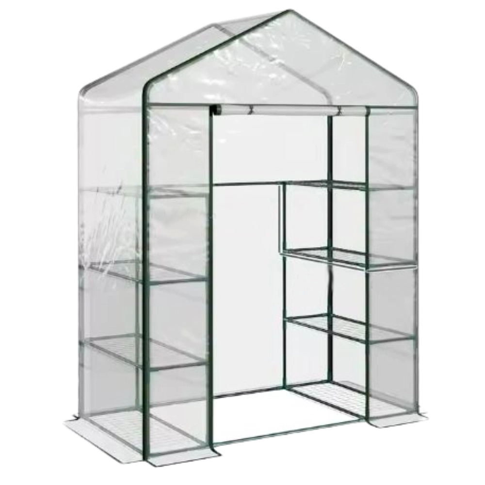 Конструкцията е изработена от прахово боядисани стоманени тръби, което гарантира устойчивост на корозия и дълъг живот в продължение на много сезони. Прозрачното PVC покритие осигурява оптимален достъп на светлина и същевременно предпазва растенията от вятър, дъжд и ниски температури.